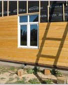 Применяется имитация бруса чаще всего в качестве отделочного материала фасадной части еврокоттеджей и малоэтажных сооружений. Если стены дома облицованы такой декоративной доской, то в целом создается впечатление, что строение полностью сложено из настоящего деревянного бруса.